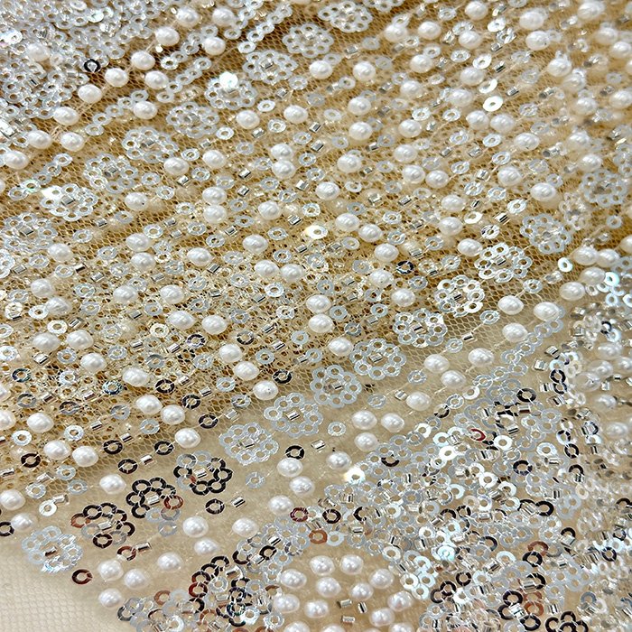 Finish off your design with this luxurious Beaded 3D Lace Fabric, sure to make your special occasion outfit one of a kind.