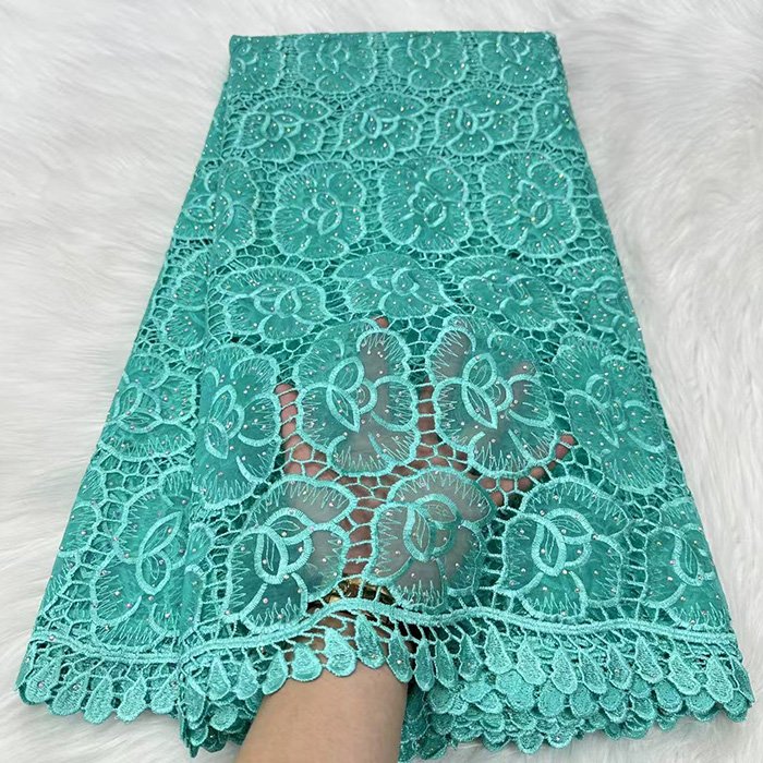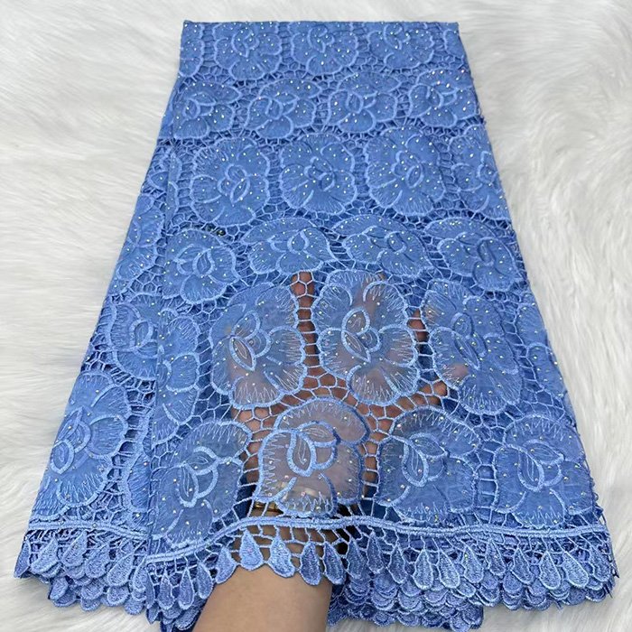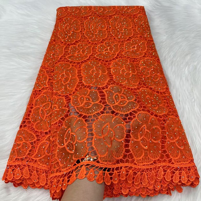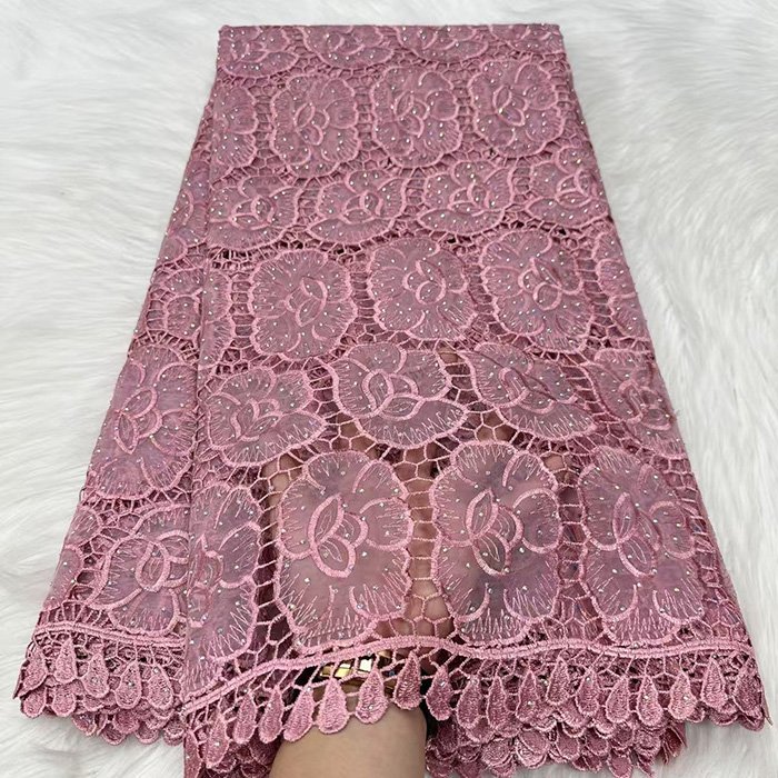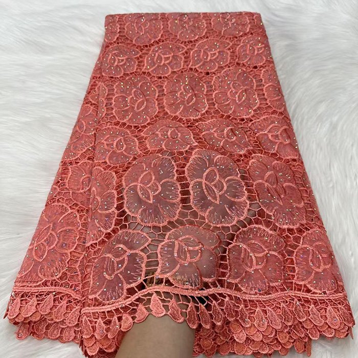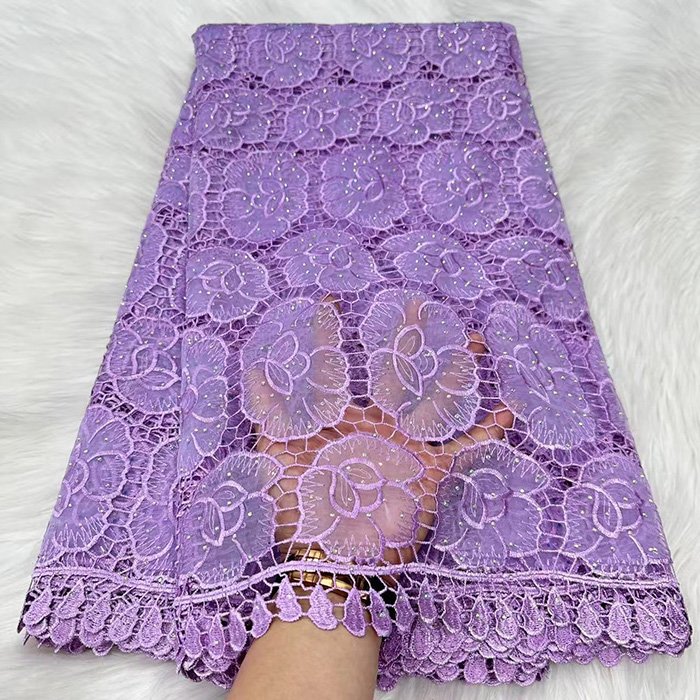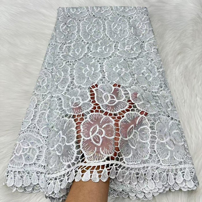 Luxury lace fabric Embroidered guipure lace without net backing, creating bold motifs. Great for statement pieces.