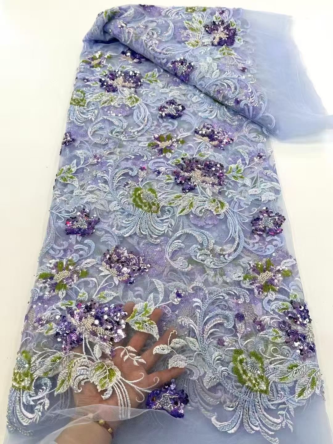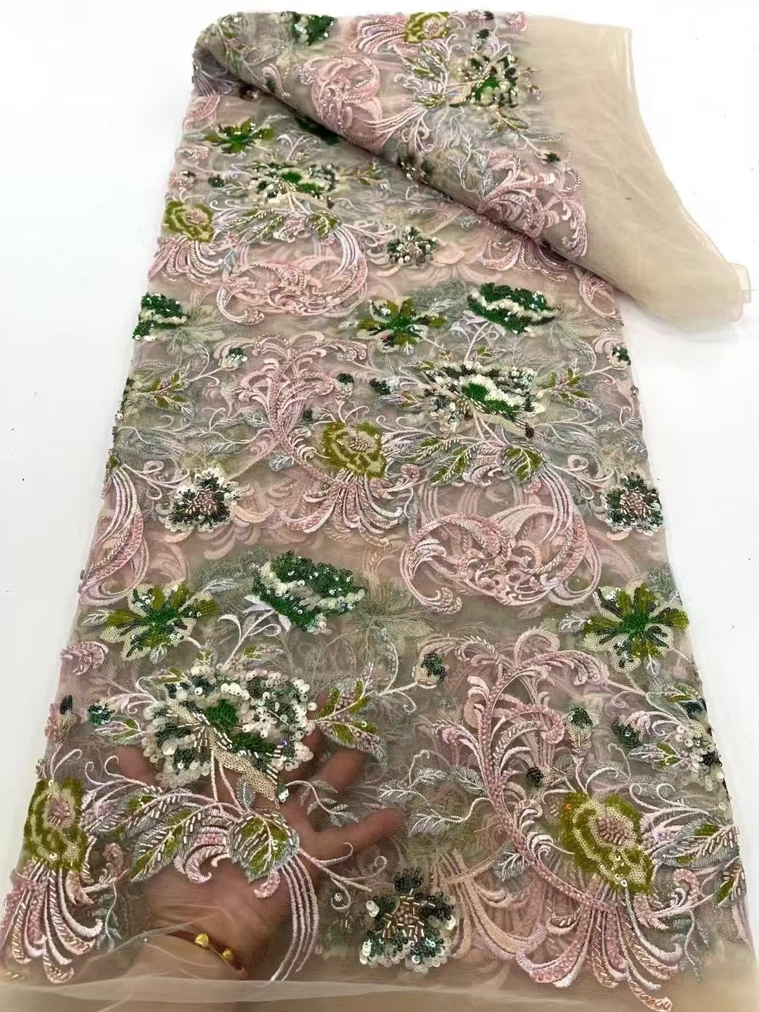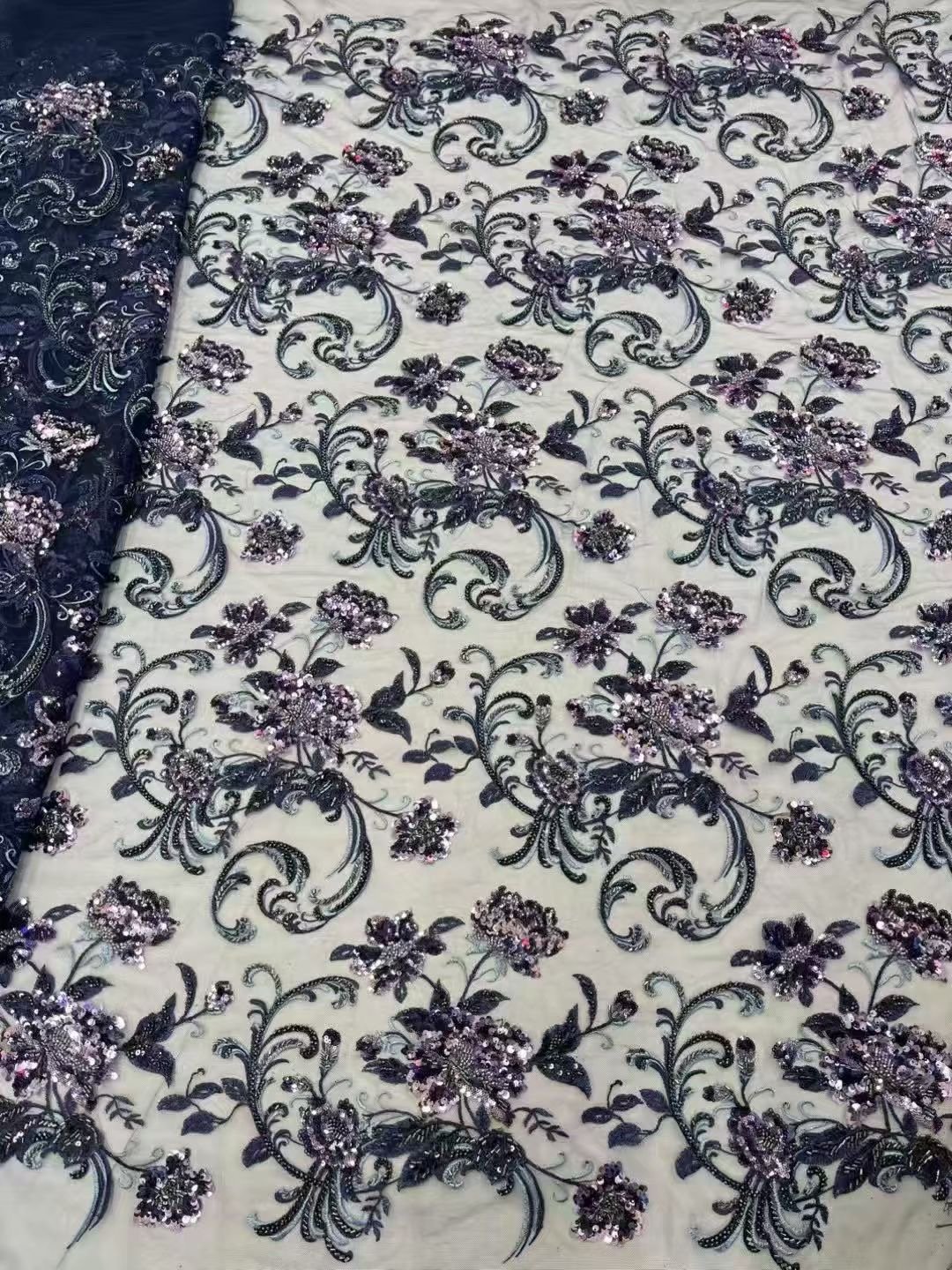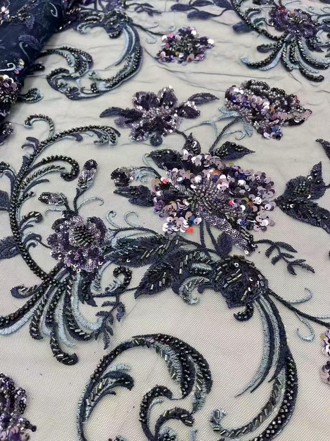 Vintage Style embroidered Lace with intricate 3D floral patterns. Ideal for bridal gowns and evening wear.