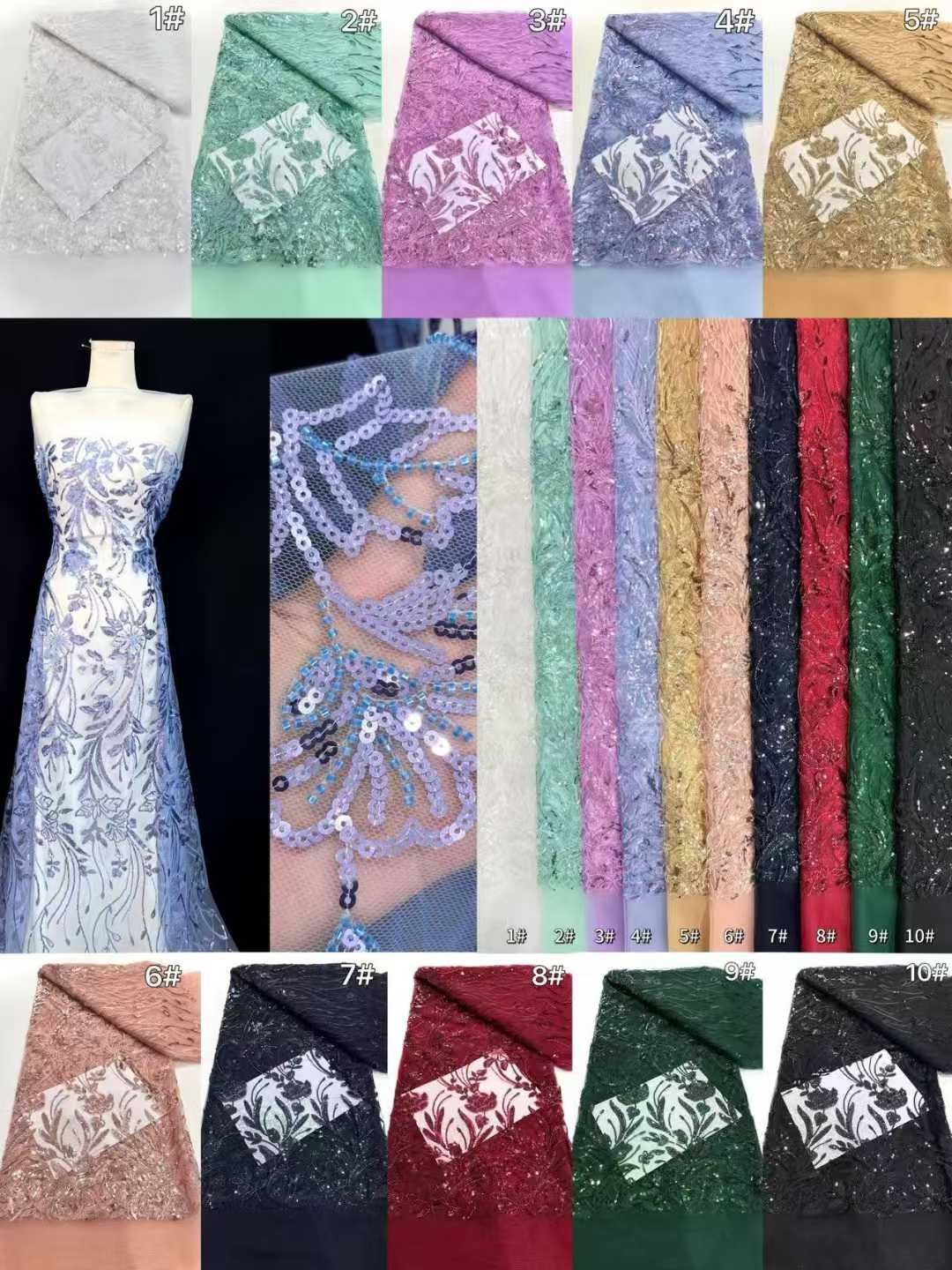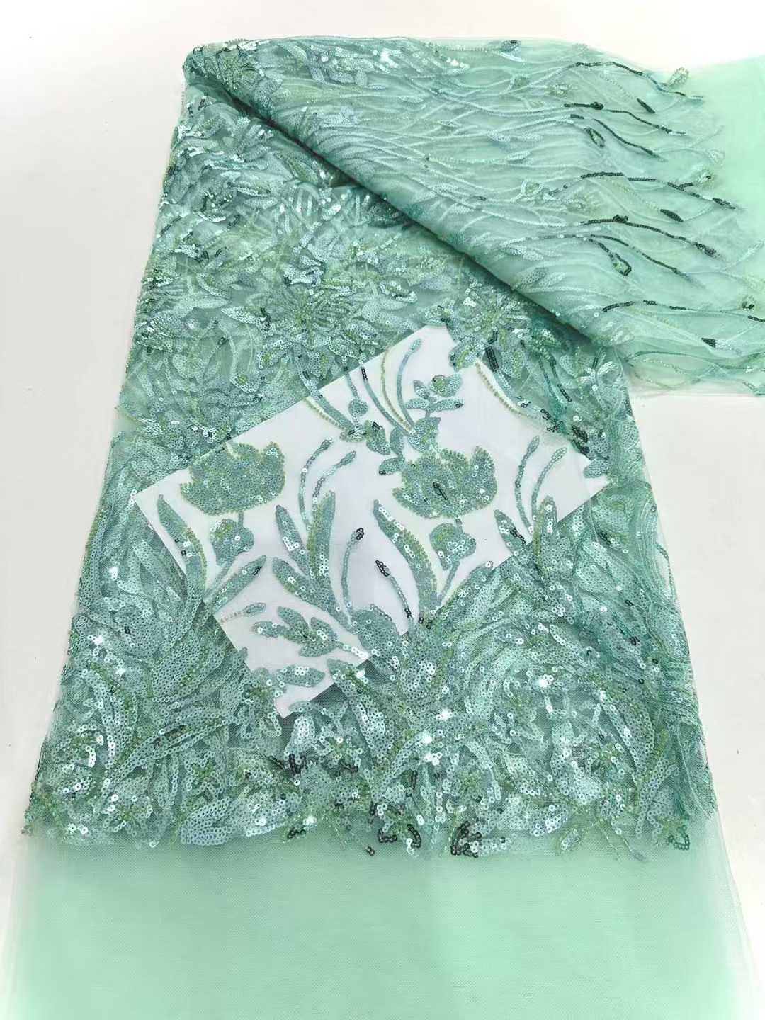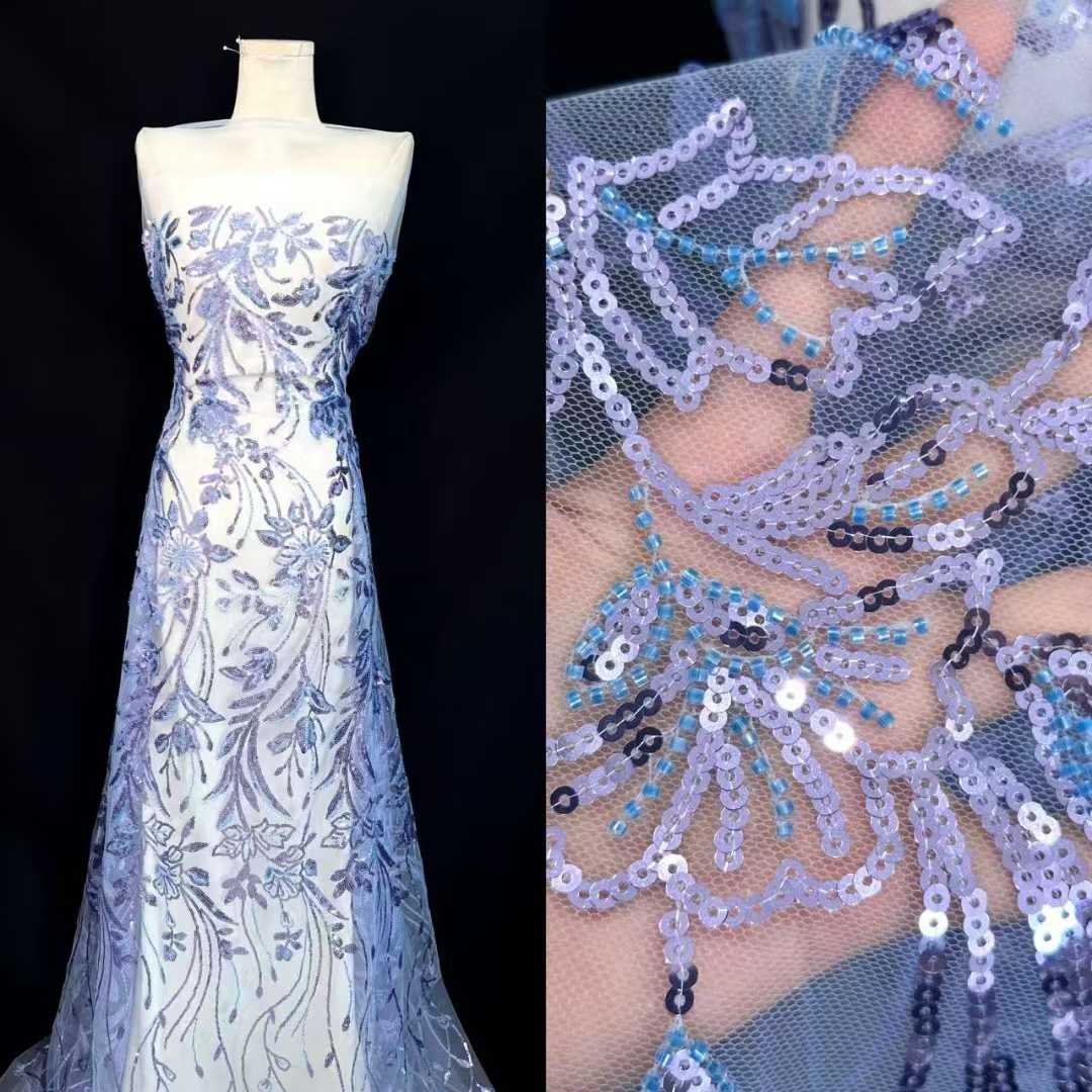 Exquisite Craftsmanship:Our fabric showcases masterful craftsmanship. The stitches on the small flowers are extremely delicate, and the embellishment of sequins is just right. These all demonstrate the high – level skills of our artisans, jointly creating a fresh and elegant charm.