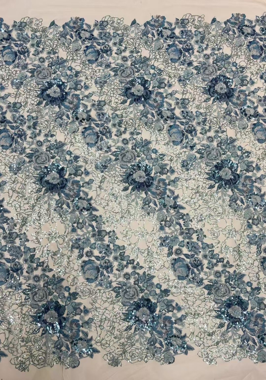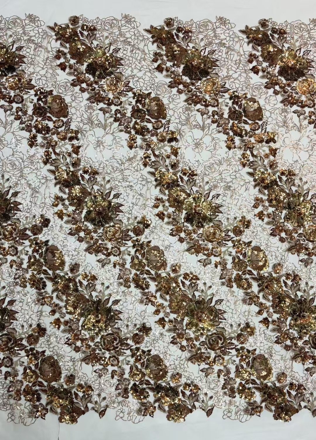 • Beaded 3 D Lace Fabric Details:Crafted from 100% Polyester Net Mesh, the beaded 3 D lace fabric is adorned with intricate 3 D embroidered beading, making it a luxurious choice. With applications for bridal, evening, quinceañera, and dance costumes, each piece is a work of art.