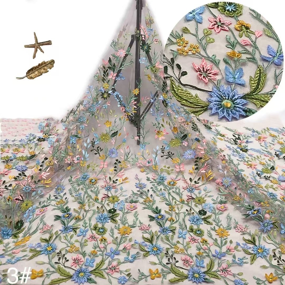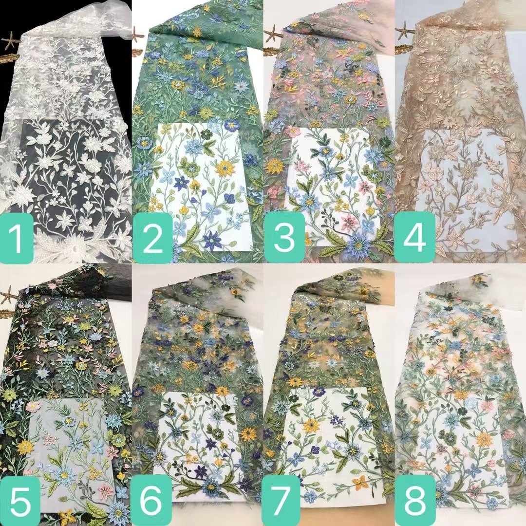 Striking 3D Visuals:The fabric’s 3D quality sets it apart. The embroidery adds depth, making the flowers and plants appear lifelike. When light hits, it creates beautiful shadows, enhancing the visual appeal.