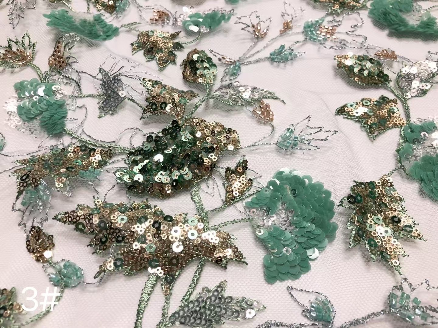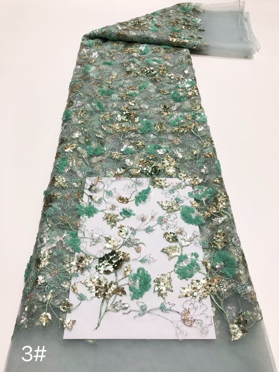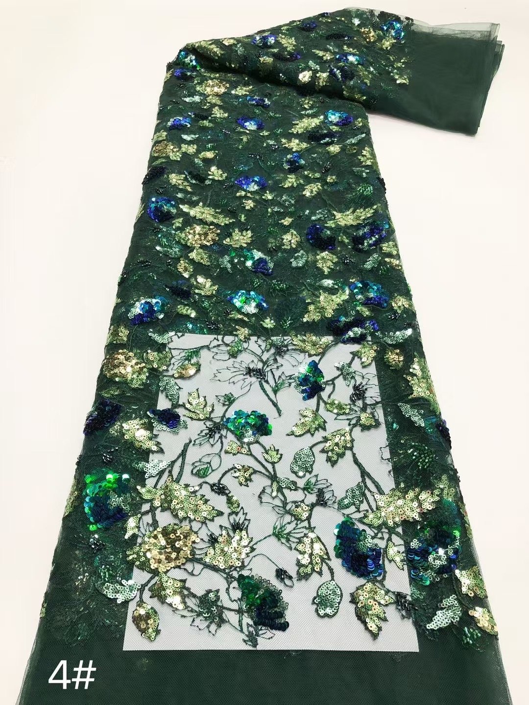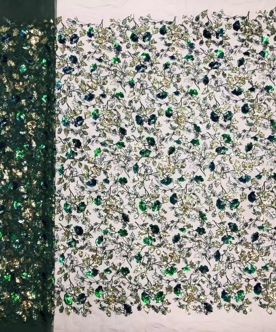 Emerald Lace with Colorful Sequin Flowers