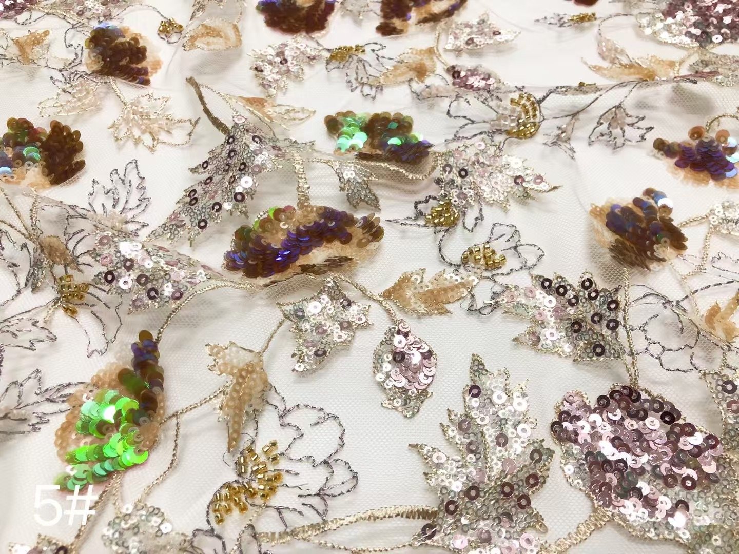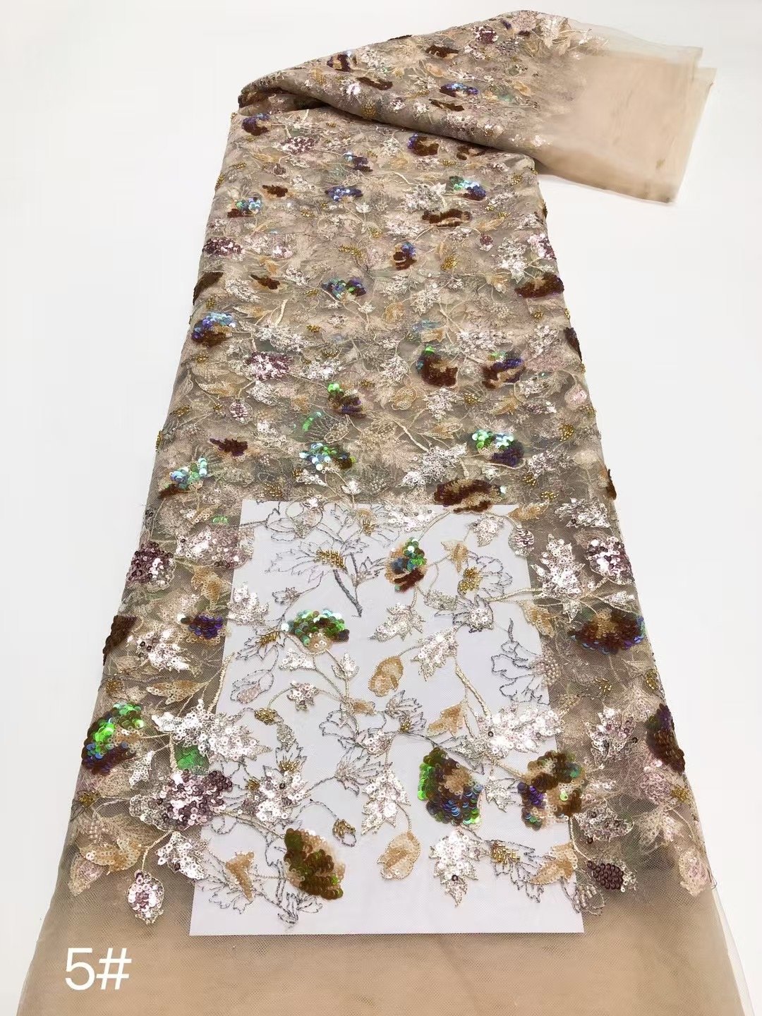 • Masterful Embellishment:Our skilled artisans delicately place each sequin, creating a mesmerizing pattern of small, multi – colored flowers. The precision in the embroidery highlights the fine craftsmanship behind this fabric.