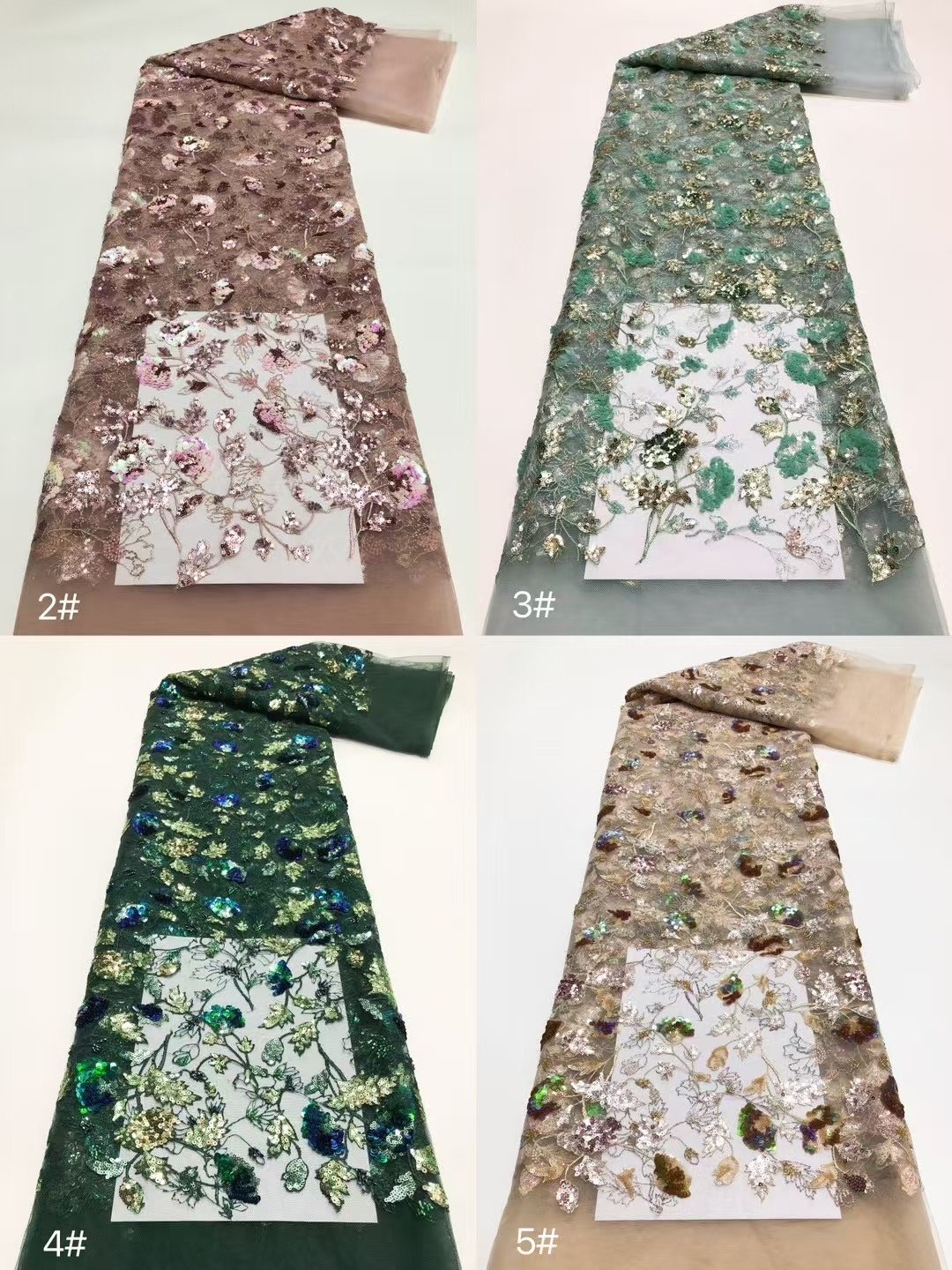 • Vivid & Lifelike Patterns:The four – colored flowers, combined with shimmering sequins, form a vivid and lifelike floral display on the lace. The design exudes a fresh, dainty charm that is truly eye – catching.